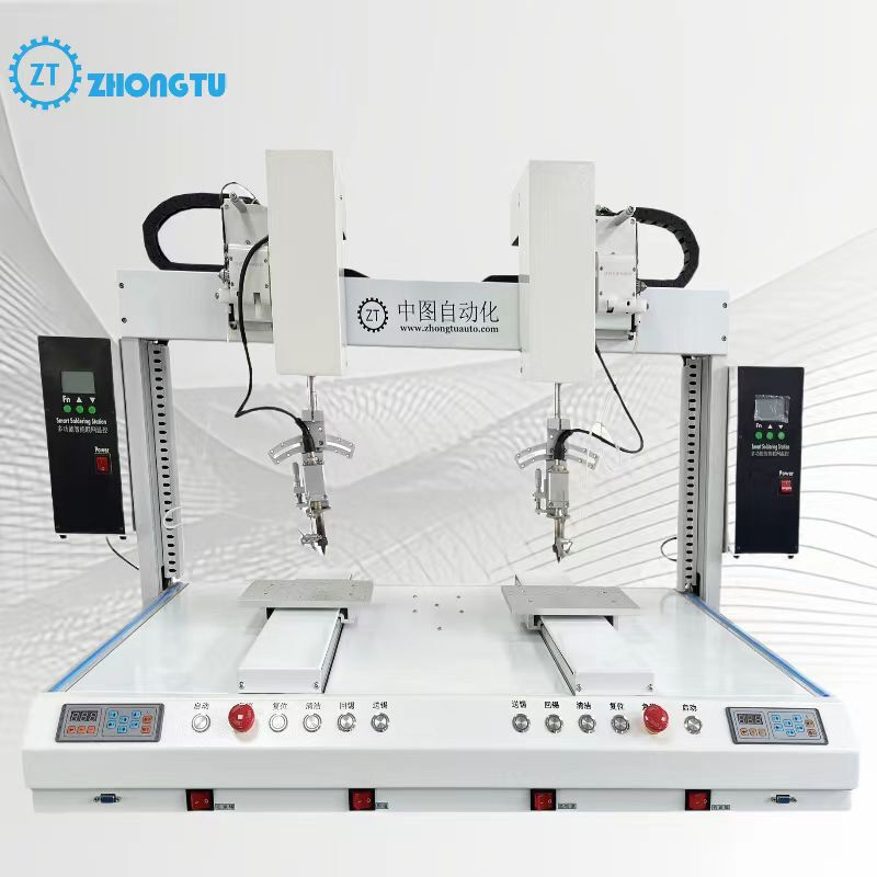 หุ่นยนต์เชื่อมอัตโนมัติที่พัฒนาขึ้นที่ออกแบบมาสําหรับการเชื่อมความแม่นยําในโรงงานผลิต, SMT และกระบวนการ DIPคุณสมบัติหัวผสมสองและแกนหมุนเพื่อเพิ่มความยืดหยุ่นและผลผลิต.